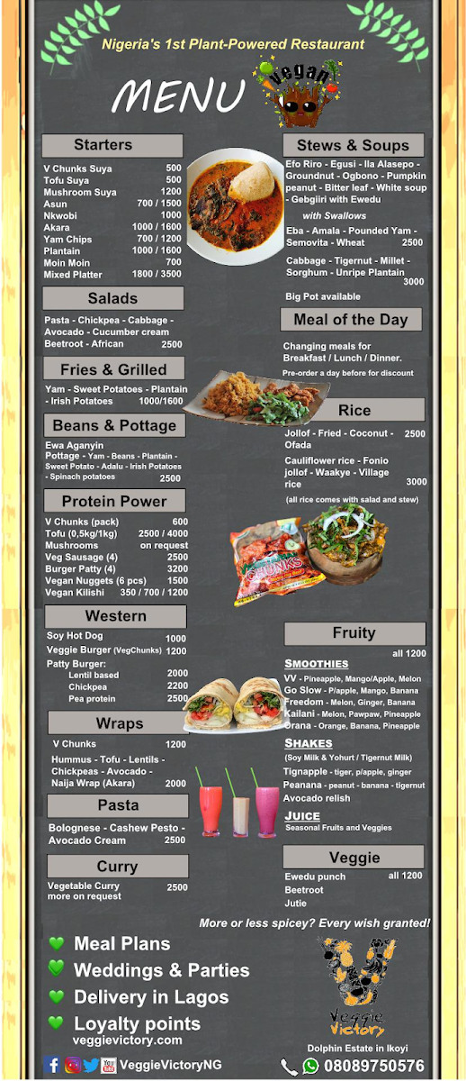 Welcome to VeggieVictory, the vibrant culinary haven located at 29a Ikorodu Cres, Dolphin Estate, Lagos. This innovative restaurant specializes in fusion vegan dishes that elevate traditional flavors. Each dish is a celebration of plant-based cuisine, crafted with care and creativity.